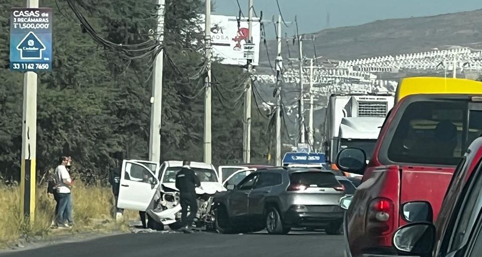 Causa de gran embotellamiento fue, en dirección a la fábrica maderera dentro de las inmediaciones de la colonia referida, el impacto entre las camionetas, mientras alrededor elementos de policía del municipio Tlajomulco de Zúñiga inspeccionaban el área de los hechos y usuarios difundían vía redes la noticia.