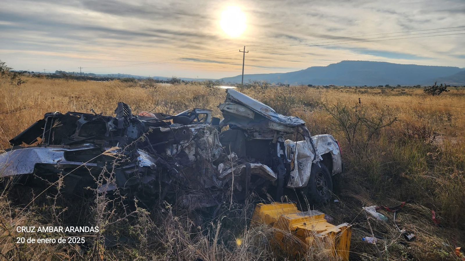 Según lo informado por Cruz Ambar Arandas, mientras circulaba por la carretera hacia Martínez Valadez, a la altura de Puerta Blanca, una camioneta Pick up se impactó en el costado de un camión de carga, perdió el control y se volcó hacia un costado del camino.