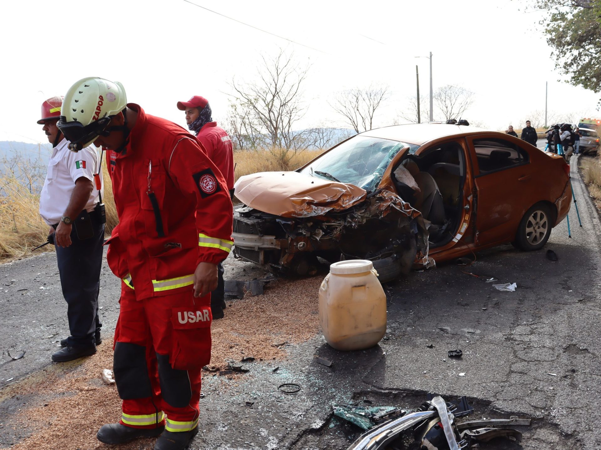 Hacia los puestos de socorros de la Cruz Verde Norte, Villas y Hospitalito se trasladaron los diferentes implicados, cuyos automóviles, uno incendiado, el segundo a la mitad de la carretera, cerraron el paso a la circulación en sentido a San Francisco de Ixcatán y El Paso de Guadalupe, sobre del Kilómetro 18 de la también conocida como carretera Juchipila – Guadalajara.