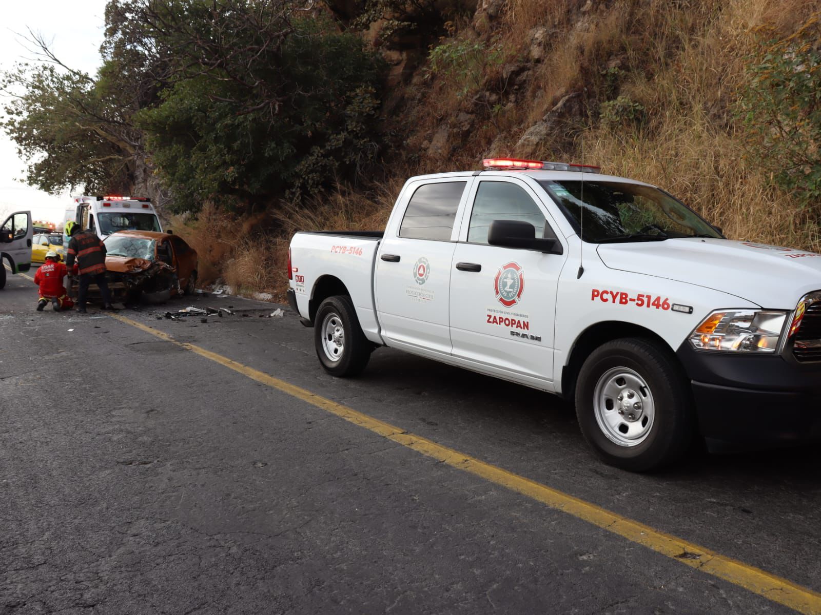 El tráfico vehicular, como resultado del accidente, al cierre de la nota se mantendrá sin cambios, mientras en el sitio las unidades de emergencia zapopanas remueven el vehículo compacto a un extremo de la carretera.