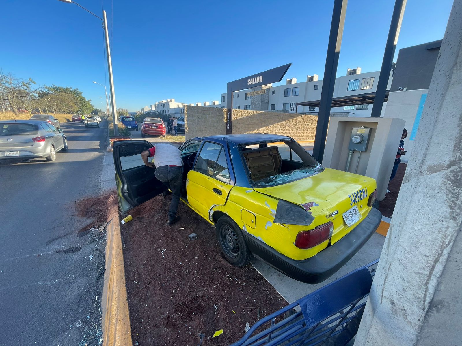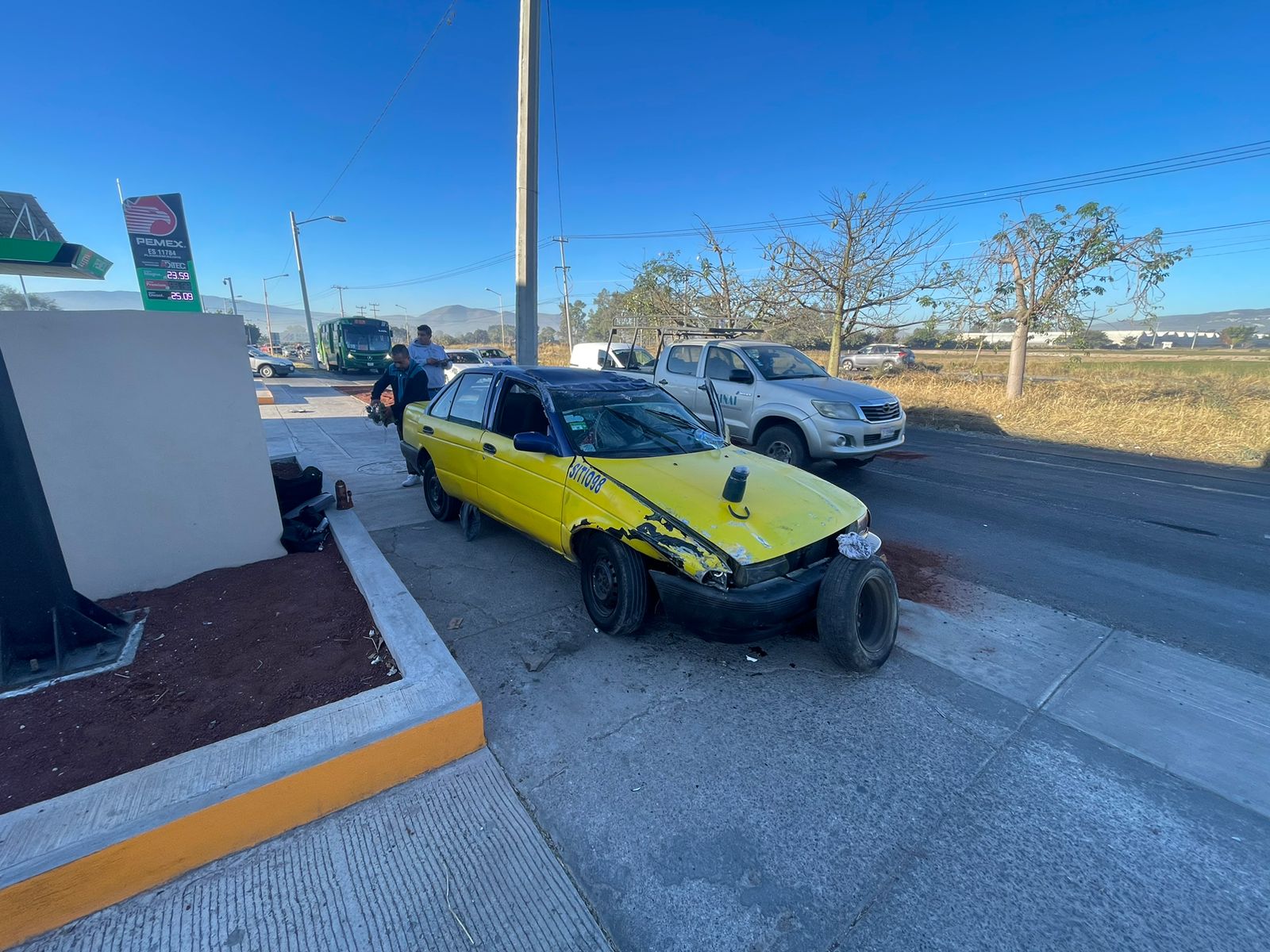 Cerca de las siete horas, con las llantas al cielo terminó el referido taxi marca Tsuru al cruce con Camino Antiguo a Tlajomulco, lo que cerró el paso a la circulación sobre el carril izquierdo de la avenida, en sentido al Anillo Periférico Sur.
