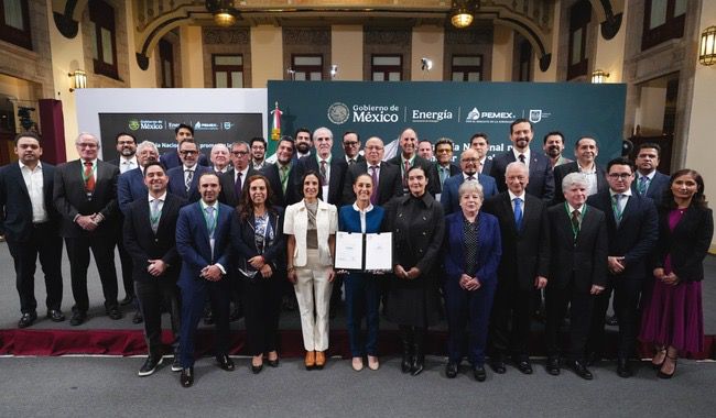 La presidenta Claudia Sheinbaum y representantes de empresas gasolineras del país firmaron un acuerdo para establecer en 24 pesos el precio de la gasolina magna.