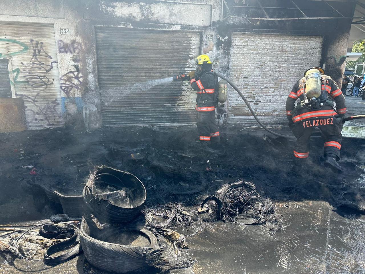 En un espacio comercial de cinco metros por cinco, ardieron hasta consumirse las mencionadas llantas, sin causar mayores afectaciones al inmueble fuera de marquesinas que el fuego alcanzó y perdieron su capa de enjarre.