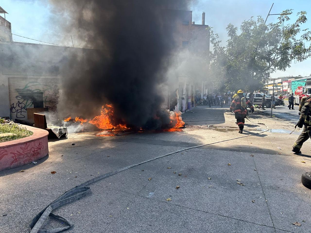 Al cruce de Calzada Independencia Norte y la calle Gómez Cuervo acudieron elementos de Protección Civil y Bomberos tapatío, quienes, tras ingresar a la ubicación en completo abandono, procedieron a extinguir las llamaradas provenientes de al menos diez llantas chamuscadas.