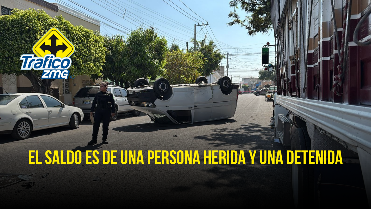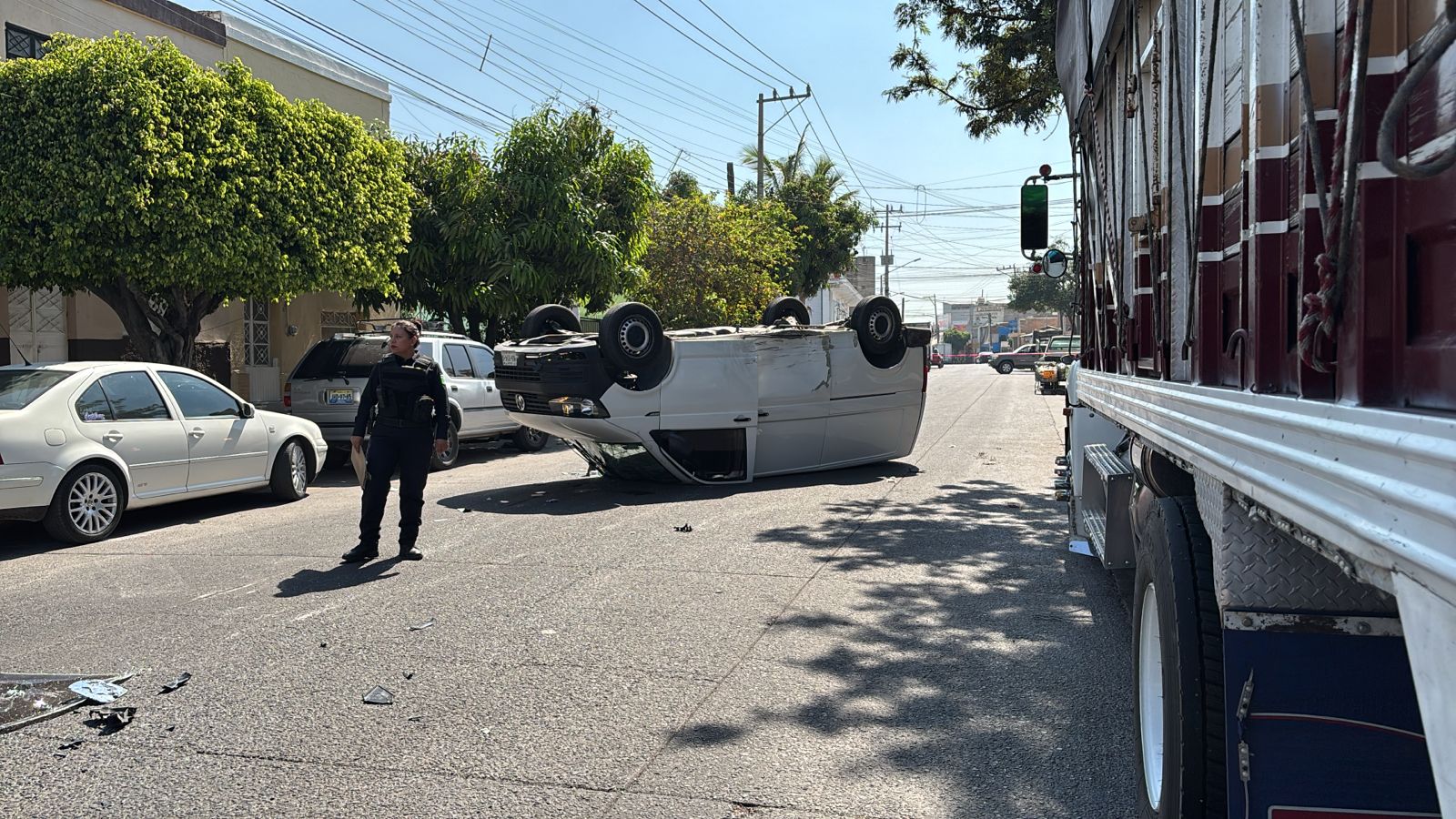 Un fuerte choque dejó a una camioneta volcada sobre la calle Josefa Ortiz de Domínguez, al cruce con Felipe Ángeles, en la colonia Progreso en Guadalajara.