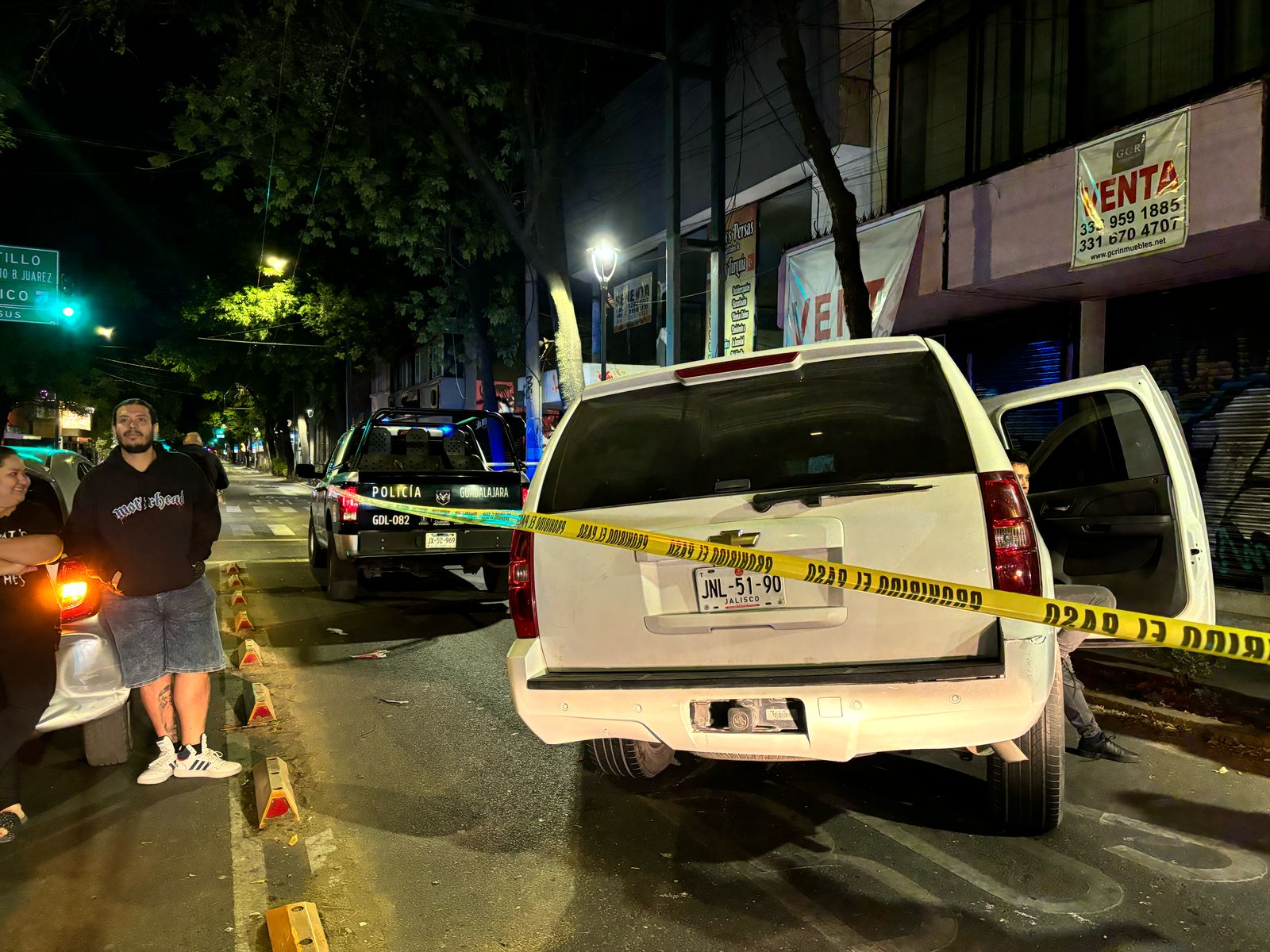 Minutos después de las 10 de la noche, un fuerte choque se registró sobre avenida Miguel Hidalgo, al cruce con calle Jesús, en el centro de Guadalajara, percance en el cual una camioneta Suburban se impactó contra un árbol.