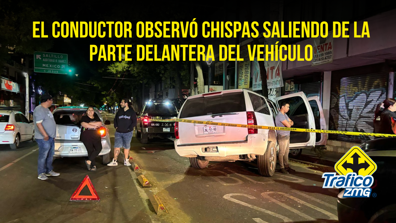 Un joven de entre 25 y 30 años viajaba en su camioneta Chevrolet Suburban por la avenida Miguel Hidalgo cuando escuchó una fuerte explosión. Acto seguido, observó chispas saliendo de la parte delantera del vehículo.