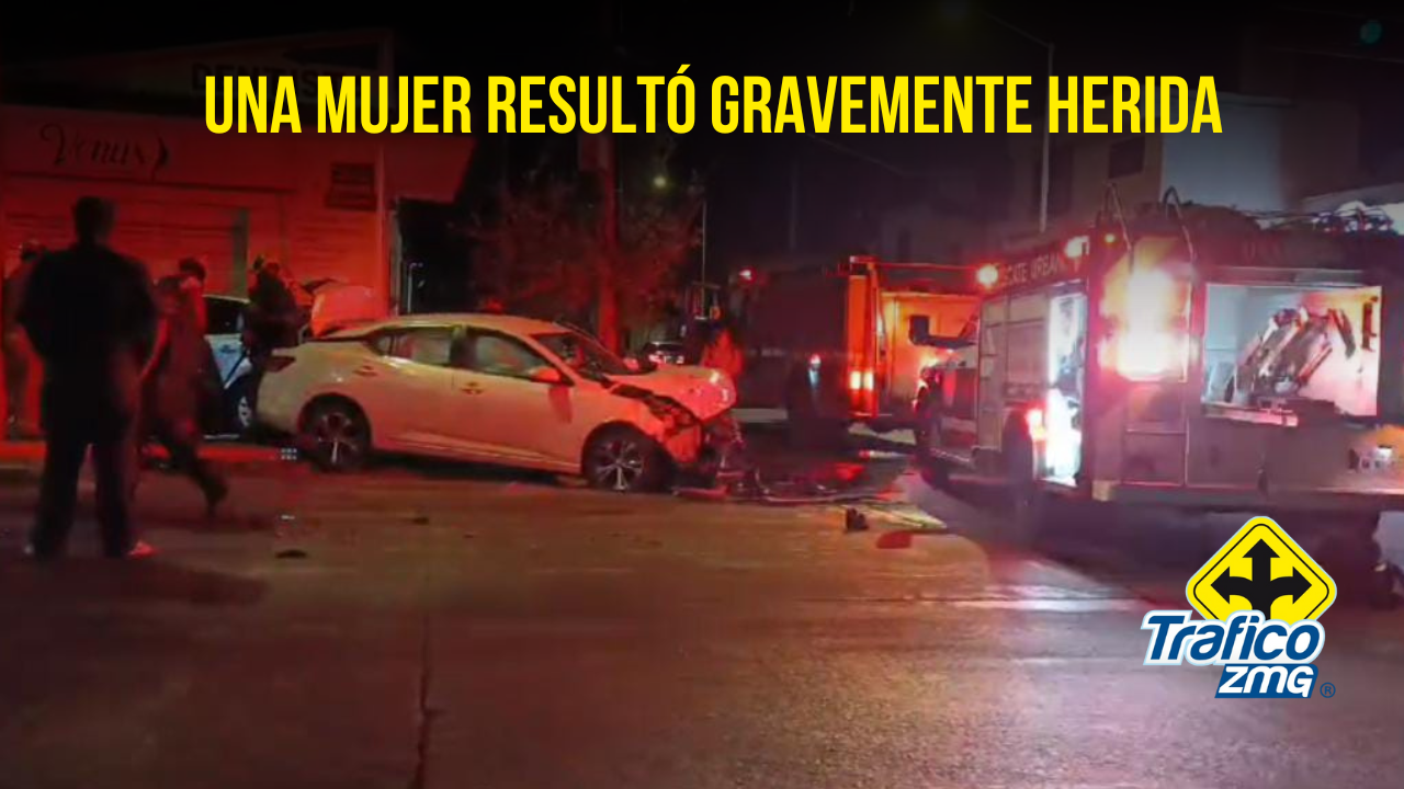Una mujer de aproximadamente 35 años fue trasladada en estado grave a los servicios médicos municipales de la Cruz Verde Ruiz Sánchez, luego de sufrir un fuerte choque vehicular.