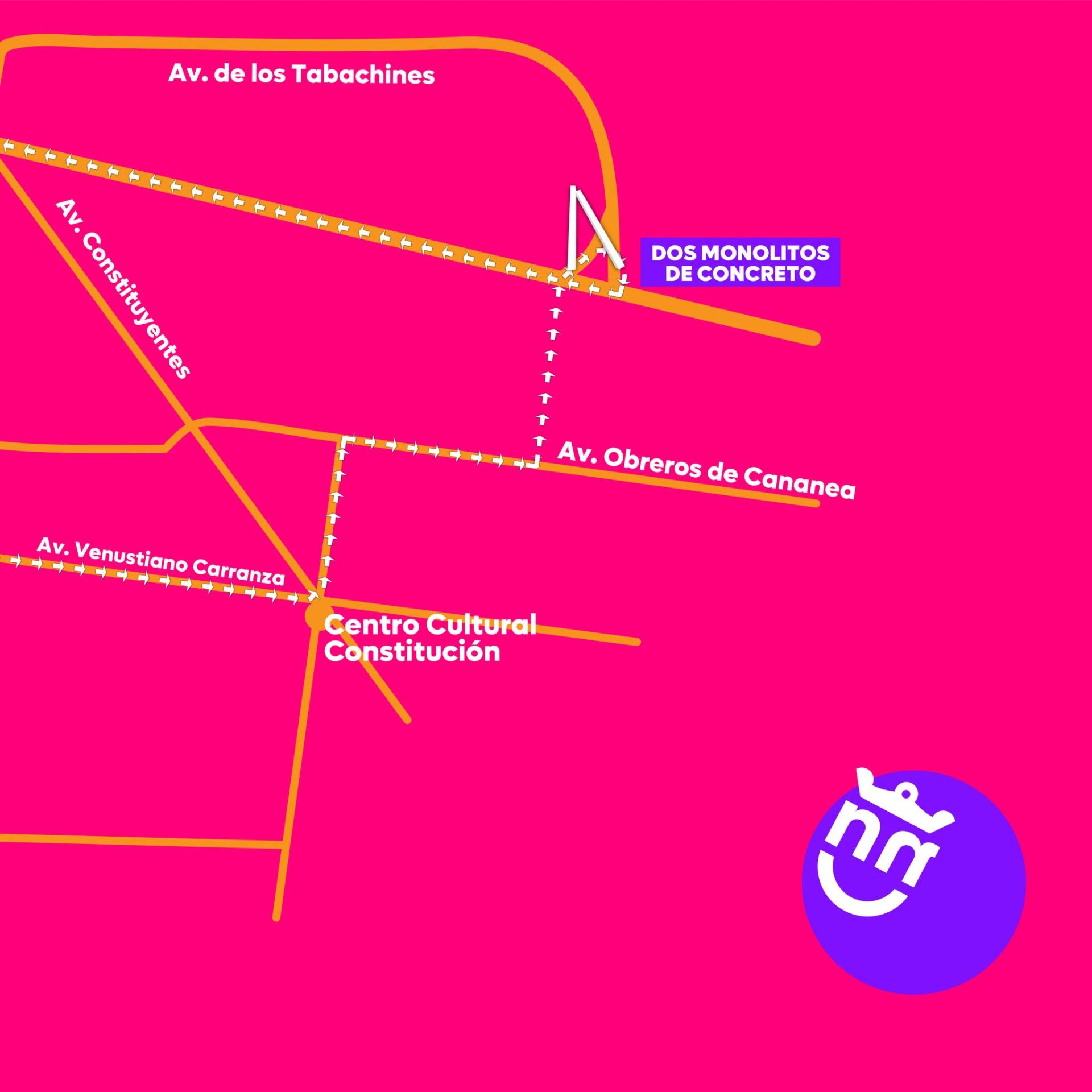 Posteriormente tomarán Periférico Norte hasta la escultura «Dos monolitos de concreto», donde darán vuelta en Antonio Madrazo hacia Obreros de Cananea y posteriormente al Centro Cultural Constitución, sobre la avenida Venustiano Carranza, en la que regresarán a Parres Arias, para finalizar en el Parque de las Niñas y los Niños, a las 00:00 horas.