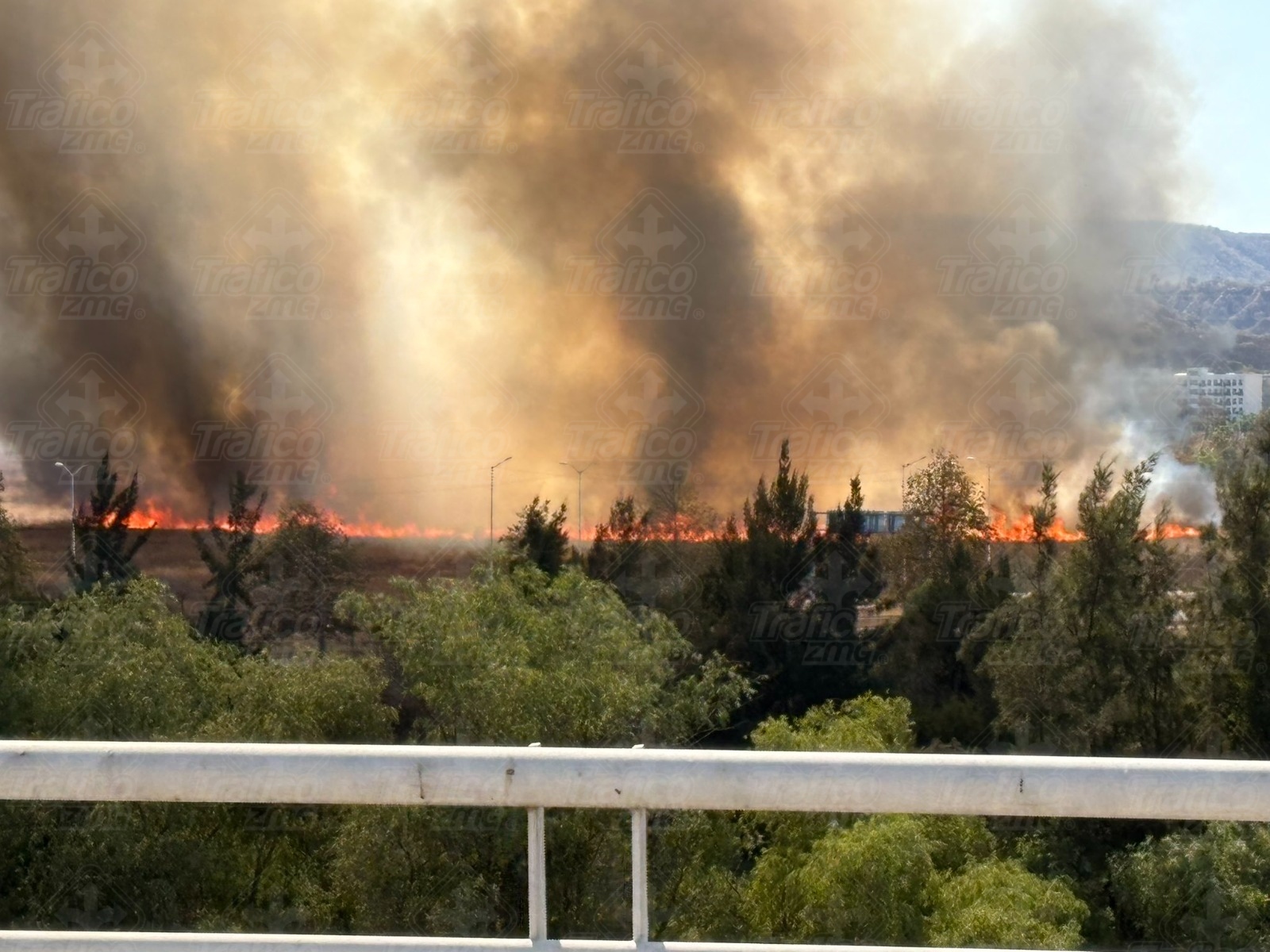 Posteriormente, aproximadamente a las 15:00 horas, ardió en llamas una gran zona de pastizal en las inmediaciones del Estadio Akron, en Zapopan. Momentos más tarde, elementos de Protección Civil y Bomberos de Zapopan refirieron que el incendio fue controlado, sin embargo, el circuito JVC se llenó de humo que imposibilita transitar por esta vía, así como por la lateral de la avenida Vallarta, en sentido poniente a oriente.