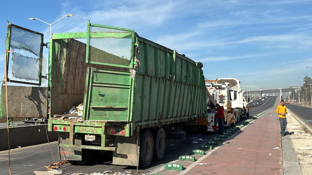 El camión pesado trasladaba una carga de veinte toneladas de papel reciclado, afirmaron testigos, mismo que fue puesto sobre sus cuatro llantas alrededor de las nueve a.m, tres horas después del arribo de la Policía Vial y un servicio de grúas.