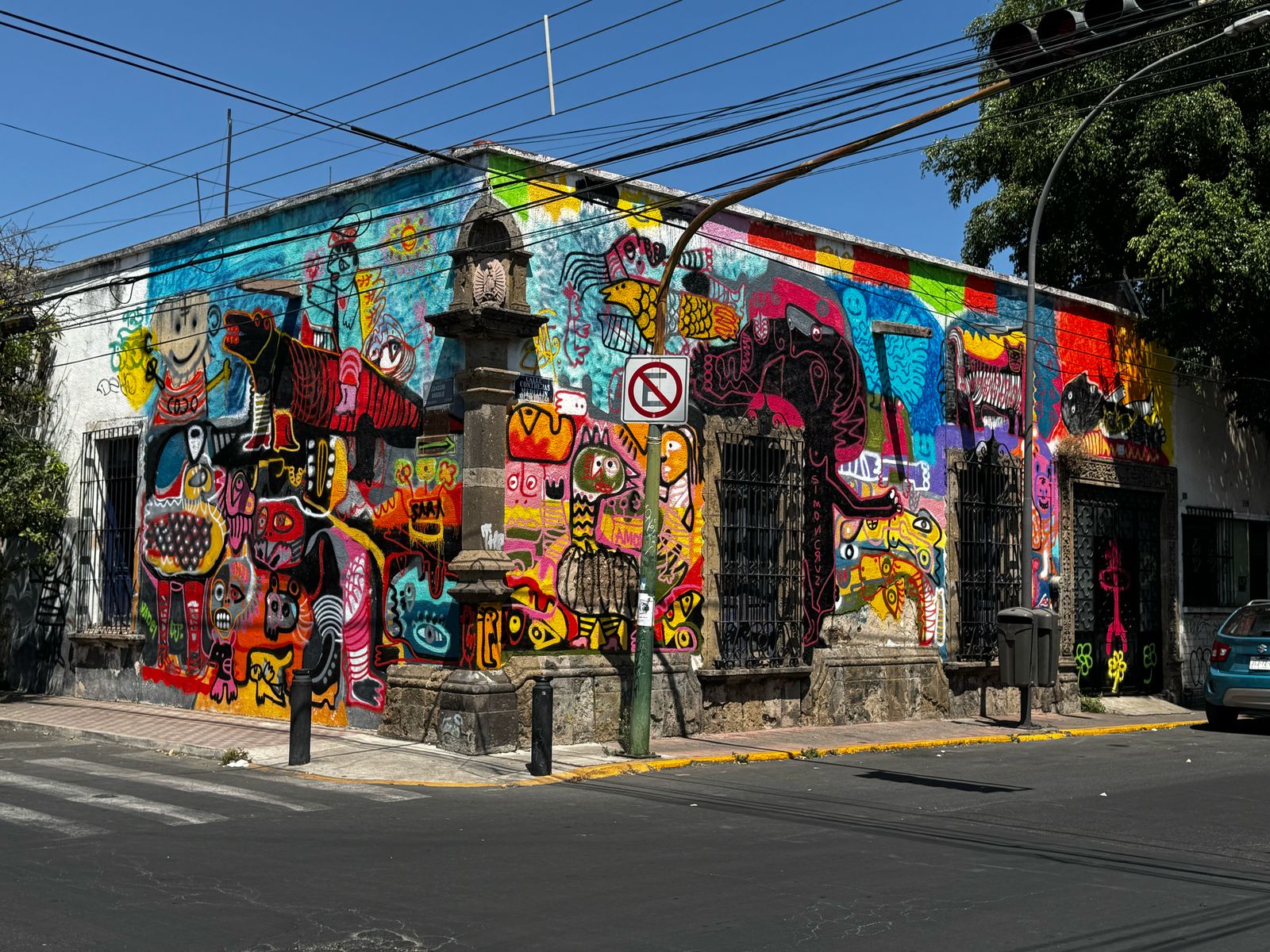 También, recientemente, trabajó en la intervención de la fachada del taller Guacha Bato. Este espacio cultural fue fundado hace 35 años por Raquel Guerrero y Sergio Ruiz en la calle Contreras Medellín 357. “Un día llegué y me preguntaron si me animaba a intervenir la fachada. Compramos aerosoles y, como es muy grande, la pintamos en dos sesiones”.