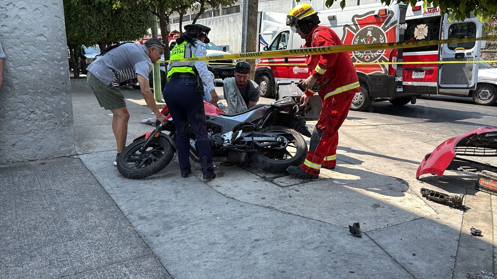 A su arribo localizaron a cuatro personas heridas, tres hombres y una mujer, uno de los hombres era quien estaba a bordo de su motocicleta.