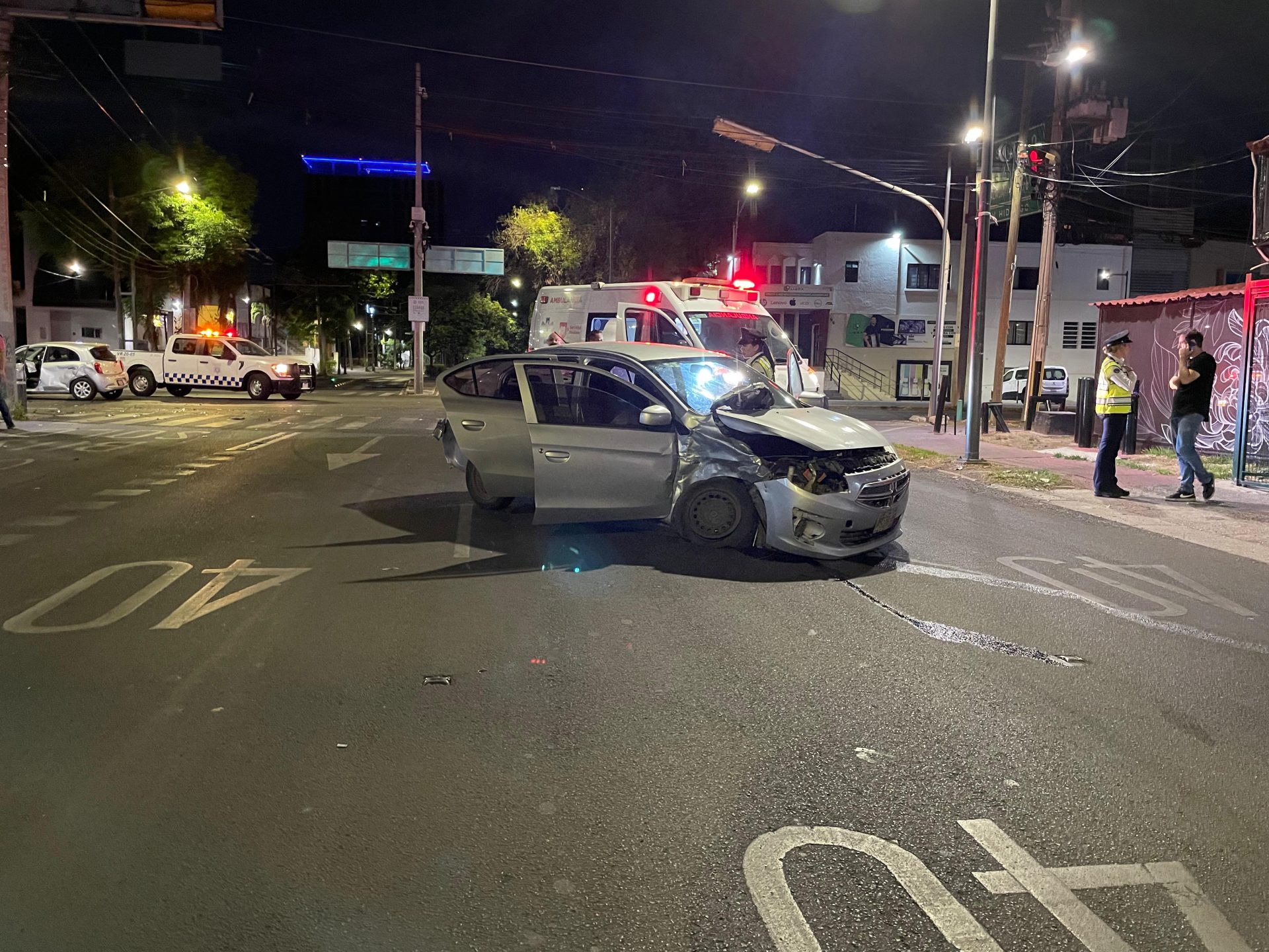 Una Dodge Attitude y un Nissan March chocaron en el cruce de las avenidas Hidalgo y Américas, en las inmediaciones de la colonia Ladrón de Guevara de Guadalajara.