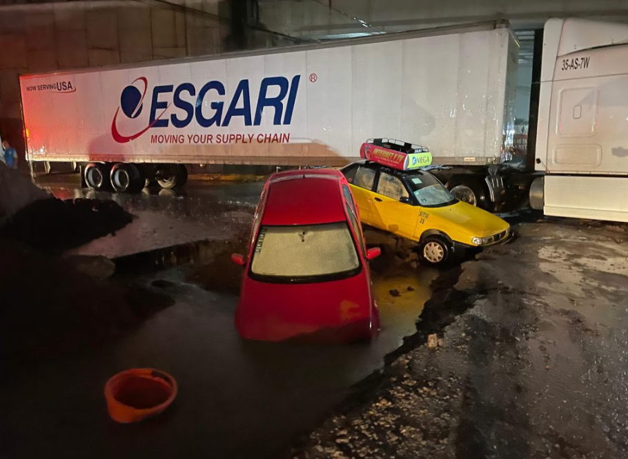 A las 10 de la noche de este miércoles, autoridades recibieron una alerta al 911 sobre dos autos en un canal, pero al llegar confirmaron que era un socavón causado por erosión. Cuando llegaron bomberos y paramédicos, se percataron de que en realidad la tierra se abrió producto de la erosión y se volvió una trampa junto con el agua.