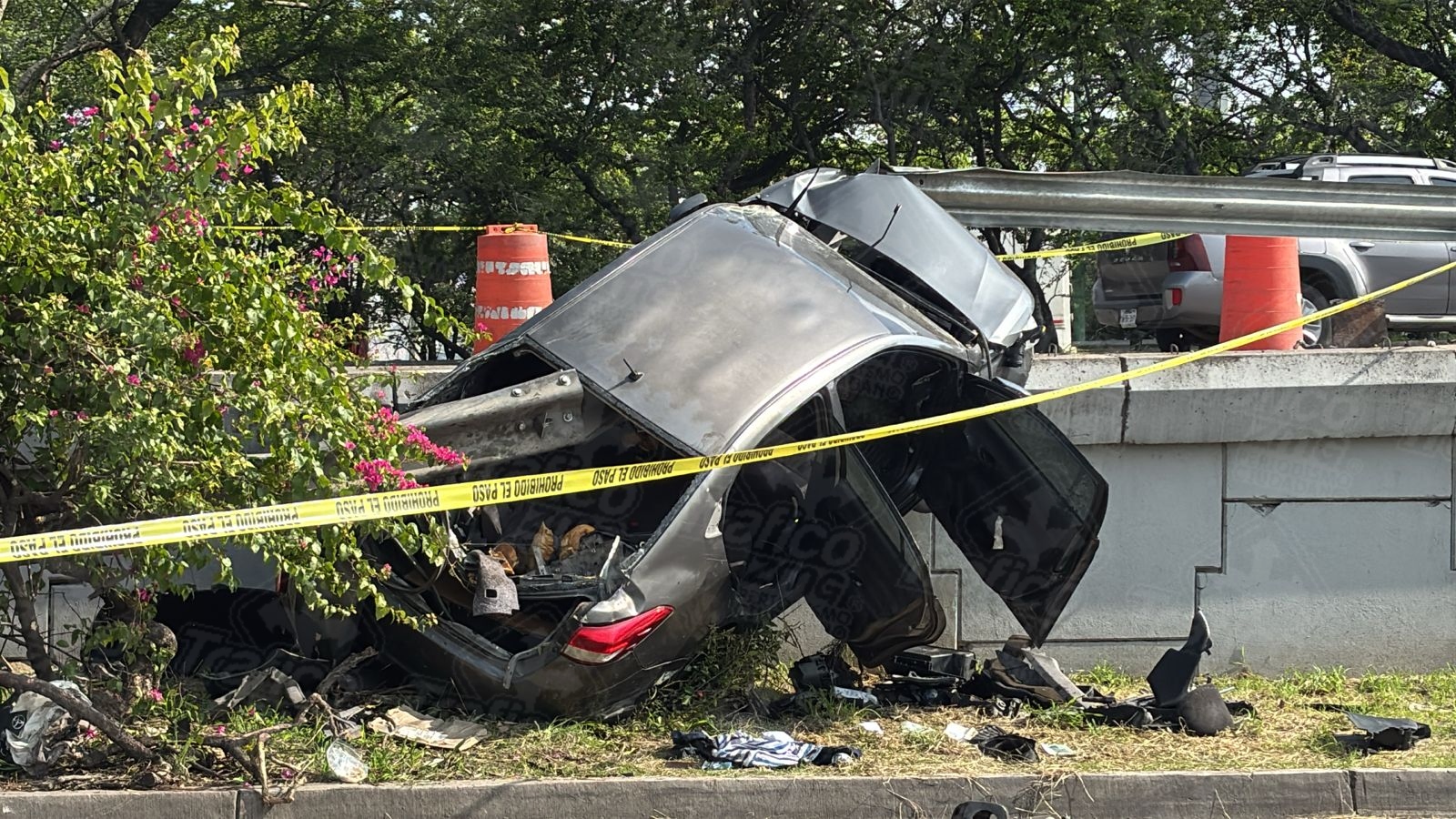 Imágenes tomadas en el sitio de los hechos comprobaron que el Toyota Yaris quedó con las llantas delanteras al cielo, además de observarse el volante del conductor sobre el césped de la separación vial donde el automóvil era visto por numerosos recurrentes de la vía.