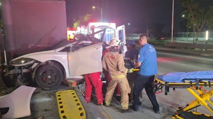 Minutos antes de las 11 de la noche, las cabinas de Cruz Verde zapopana y de los bomberos municipales recibieron múltiples reportes que alertaban de dos personas atrapadas tras chocar en el lugar.