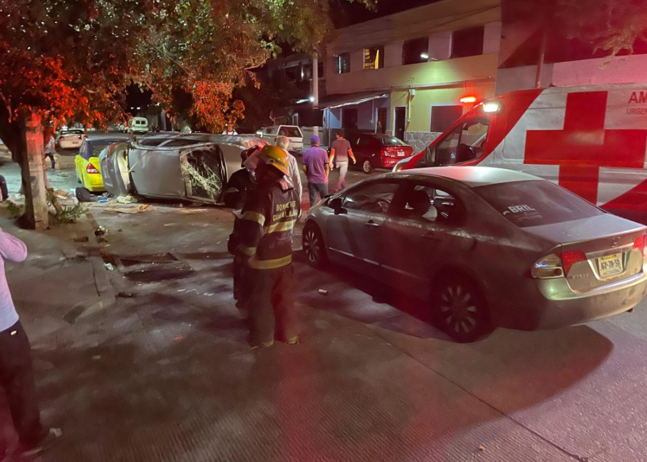 En cuestión de minutos, paramédicos de Cruz Roja y rescatistas urbanos de Bomberos de Guadalajara atendieron el siniestro. Se trató de la colisión entre Nissan Tiida y un Honda Civic. El Tiida, tras la colisión, acabó de lado y se estrelló contra un taxi estacionado.