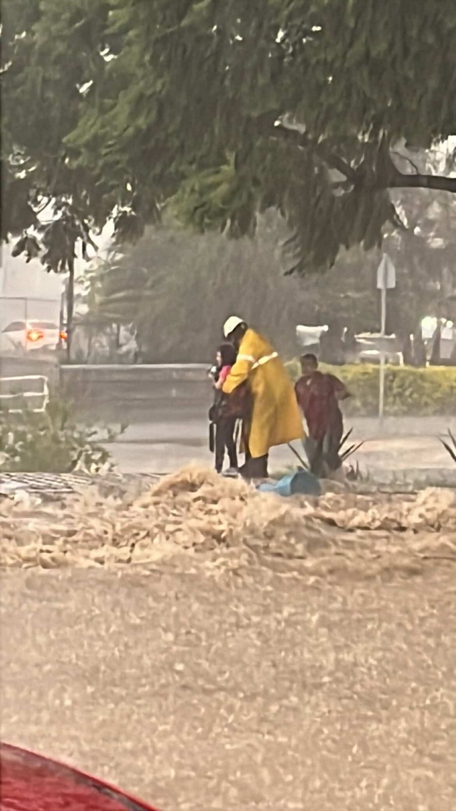 Una mujer y una niña fueron rescatadas por personal de Protección Civil y Bomberos luego de que el vehículo en el que viajaban fuera arrastrado por la fuerte corriente en el cruce de la avenida Industria Textil y la calle Tarragona, en la colonia Altagracia. Se reportaron ambas personas sin lesiones de consideración y las trasladaron a servicios de emergencia para una revisión médica preventiva.