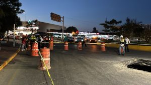 Fue la tarde de este jueves cuando de manera repentina fue cerrada la circulación vial sobre el cruce de las avenidas La Calma y López Mateos, justo en la zona de la glorieta. Esto se debió luego de qué autoridades detectarán una fuga de agua potable en el lugar, misma que comenzó a filtrarse por los ductos pluviales, causando reblandecimiento en el asfalto y abriendo un pequeño hoyo que al paso de las horas comenzó a crecer, hasta alcanzar los seis metros de diámetro y 3 de profundidad.