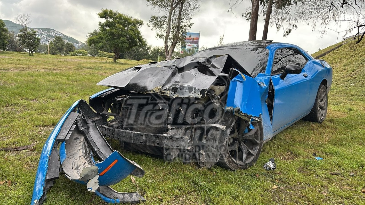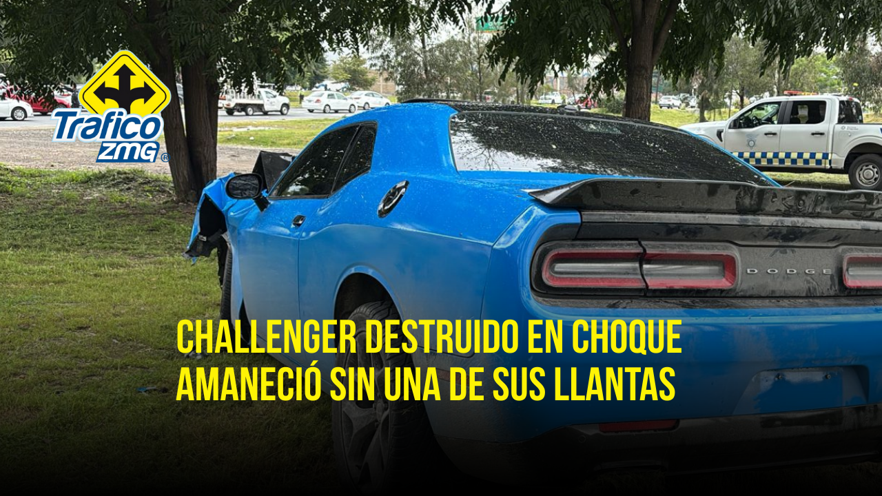 Esta mañana, conductores sobre la avenida López Mateos Sur visualizaron un automóvil modelo Challenger siniestrado a orillas de la vialidad, con muestras de haber participado en un fuerte choque.