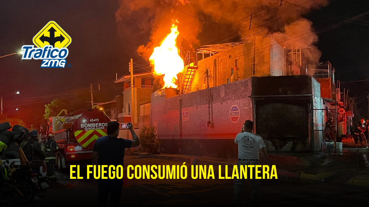 En cenizas, quedó una llantera tras un fuerte incendio que devoró el negocio ubicado en la confluencia de la avenida de La Cruz y la calle Jade de la colonia San Marcos de Guadalajara.