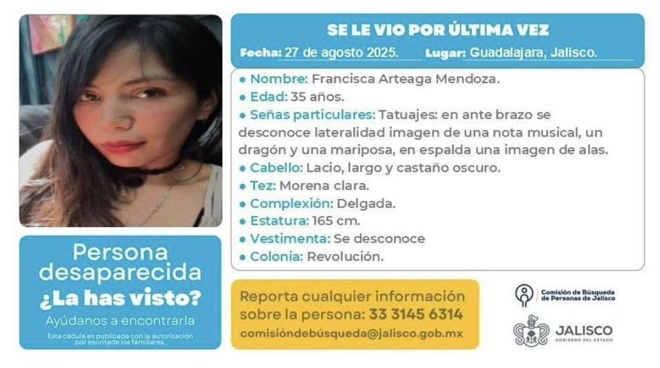 La joven de 35 años fue vista por última vez el pasado 27 de agosto en la colonia Revolución de Guadalajara. Esta es la tercera manifestación que se realiza para exigir su regreso.