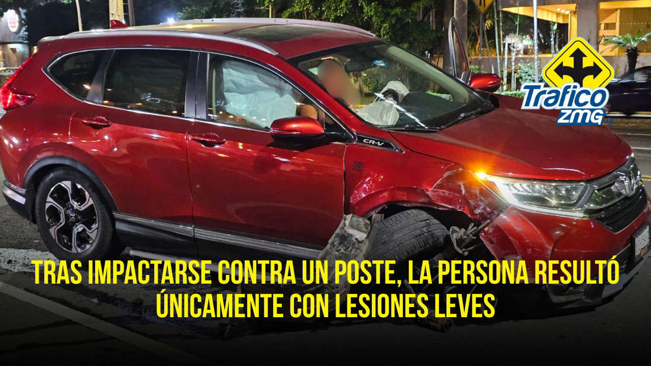 Una mujer de aproximadamente 40 años de edad protagonizó un aparatoso accidente vehicular la madrugada de este viernes, al chocar su camioneta contra un poste en el cruce de avenida Vallarta y la calle Isabel la Católica, a tan solo una cuadra de Glorieta La Minerva.