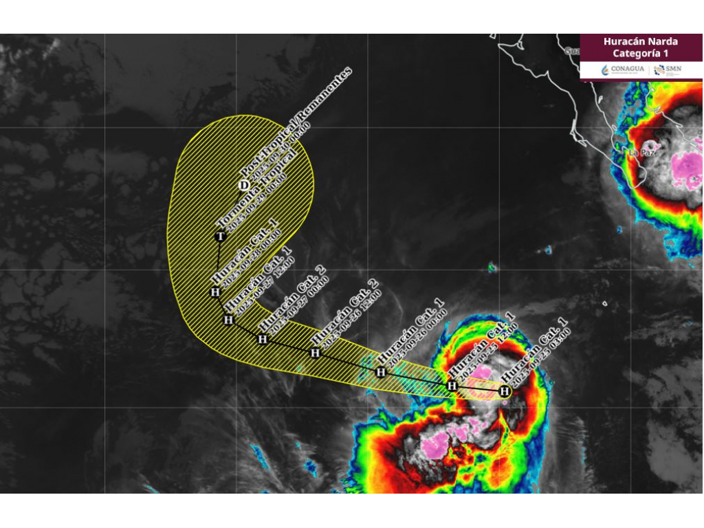Huracán Narda mantiene categoría 1 y provoca oleaje elevado en el Pacífico mexicano