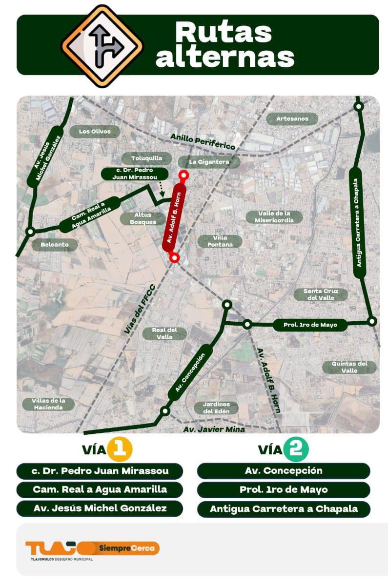 Desde este viernes comenzó un operativo de contraflujo vial sobre la avenida Adolf B. Horn en Tlajomulco, debido a las obras de Renovación de la Infraestructura Vial e Hidrosanitaria que se realizan en esta vía.