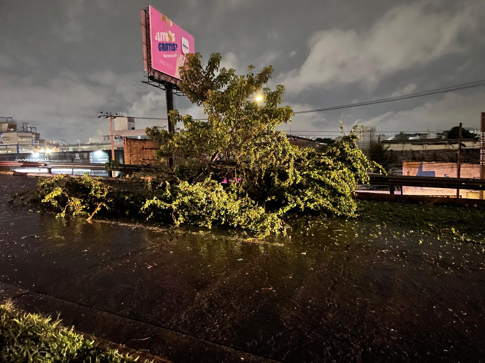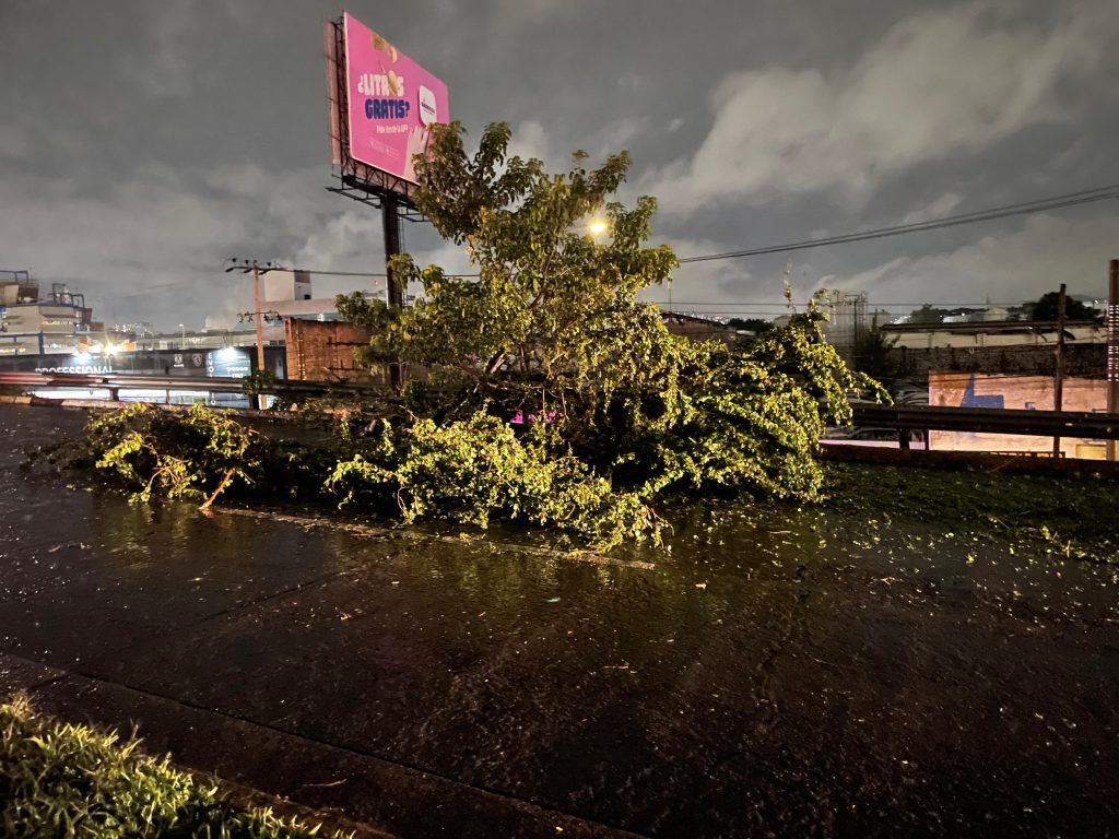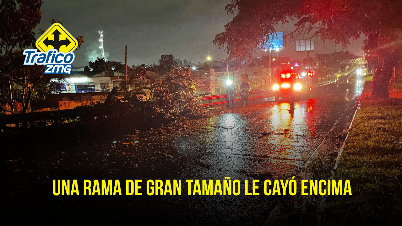 Alrededor de las 2 de la madrugada de hoy, los socorristas venían de un traslado en la ciudad de Guadalajara. Según sus palabras, en su retrovisor, vieron la rama a caer y al conductor de la moto accidentarse.