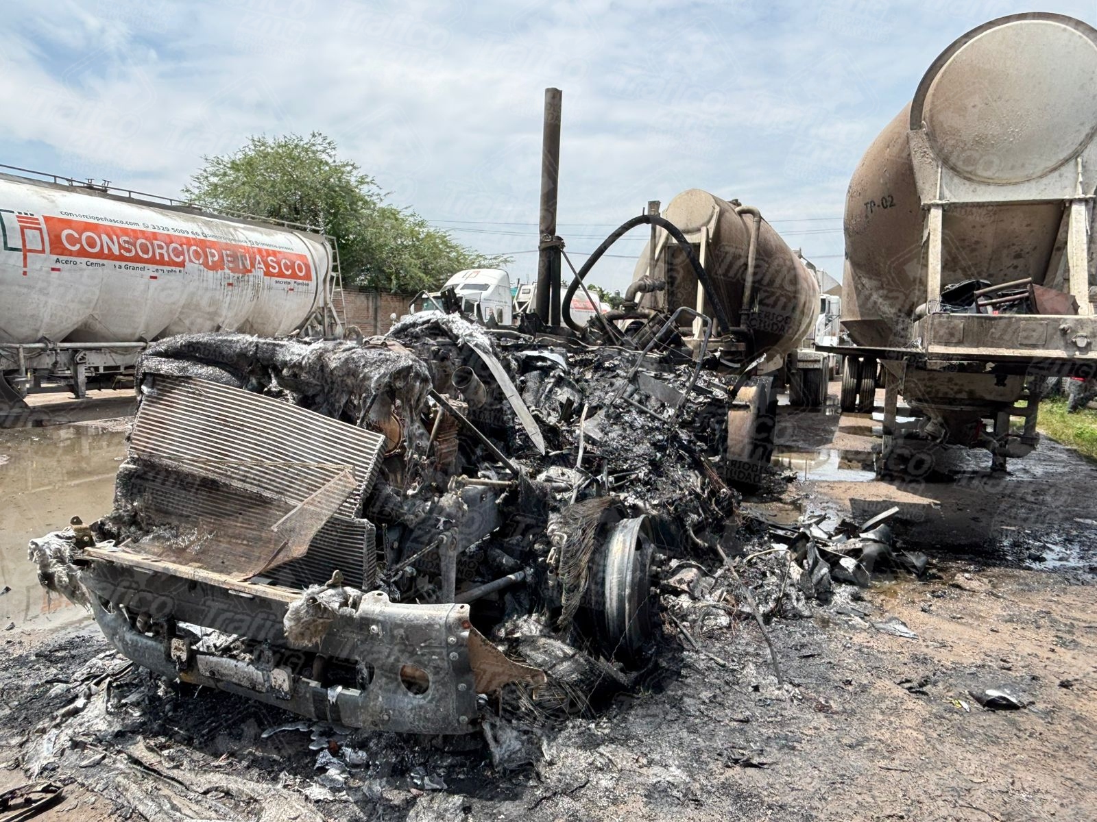 Asimismo, pese a los esfuerzos coordinados, la pipa transportadora terminó consumida en su totalidad.