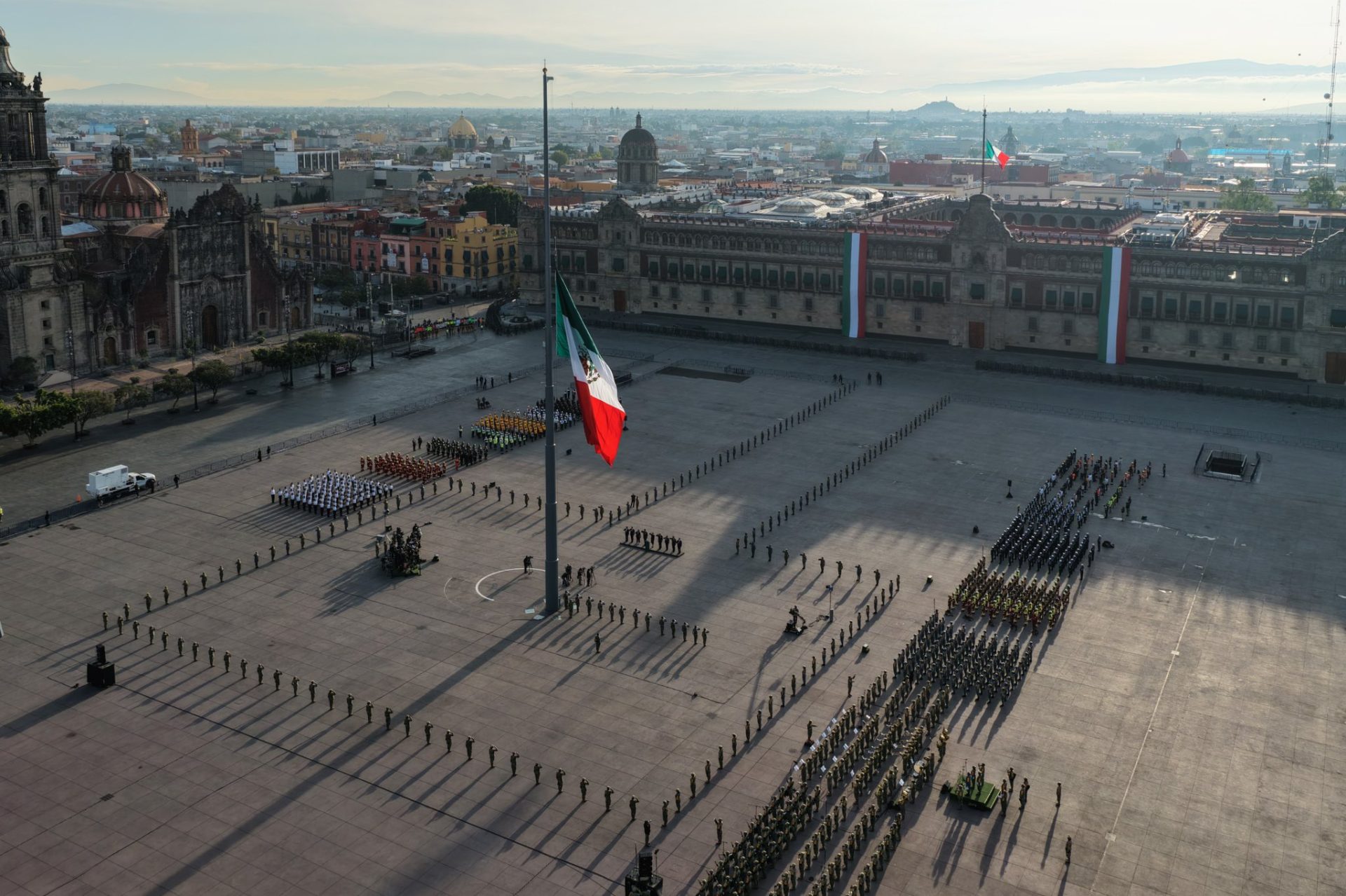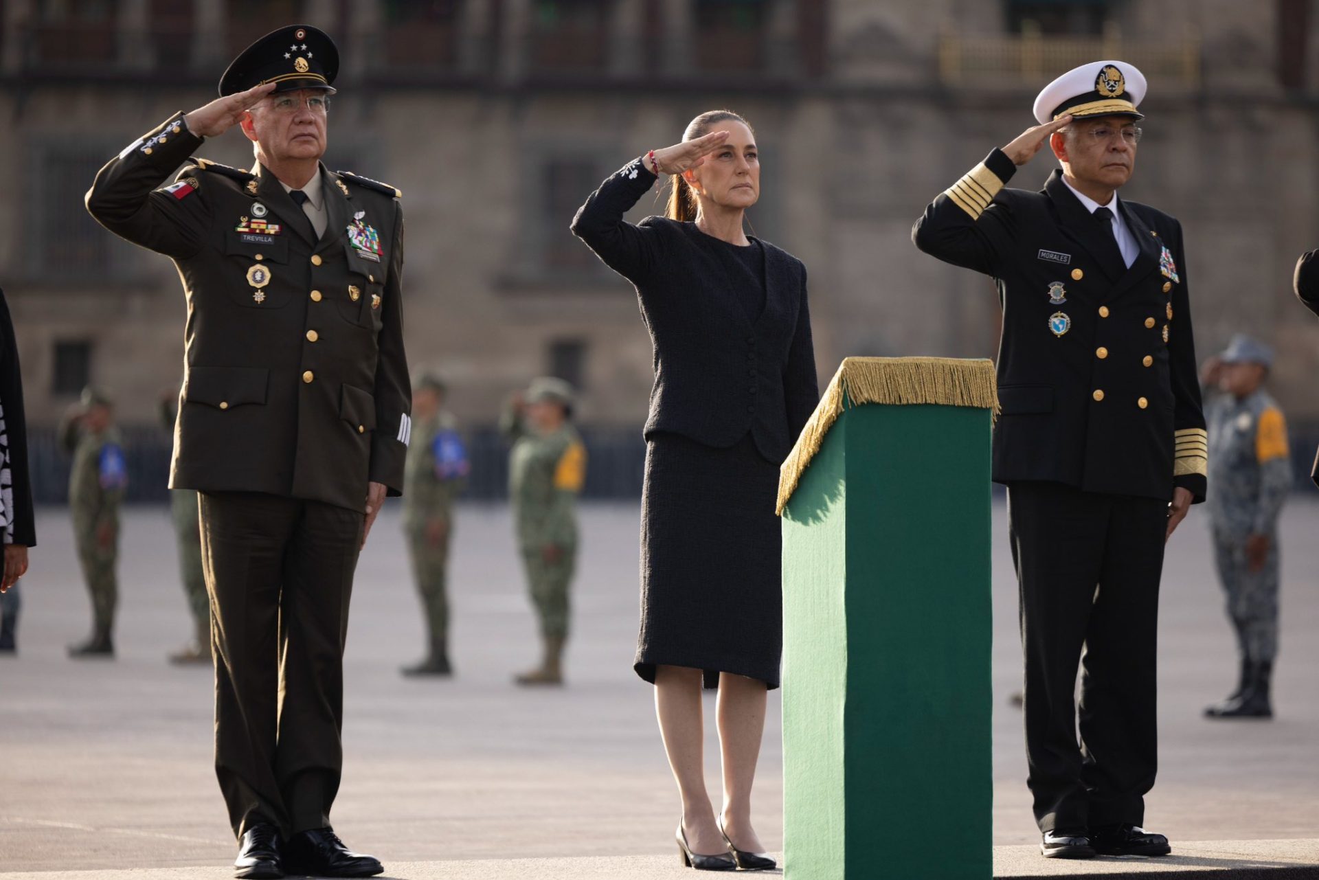 Acompañada por autoridades del gabinete federal, de la Ciudad de México y de las Fuerzas Armadas, presidió el izamiento a media asta de la bandera nacional. “Nuestro cariño y abrazo a todos aquellos que fueron afectados por los sismos”, expresó.