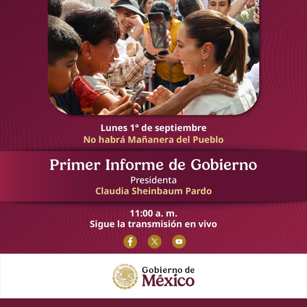 Empezando a las 11:00 horas, el informe de este lunes supone un antecedente para el segundo informe de la mandataria, previsto para el 1 de octubre, en el Zócalo de la CDMX.