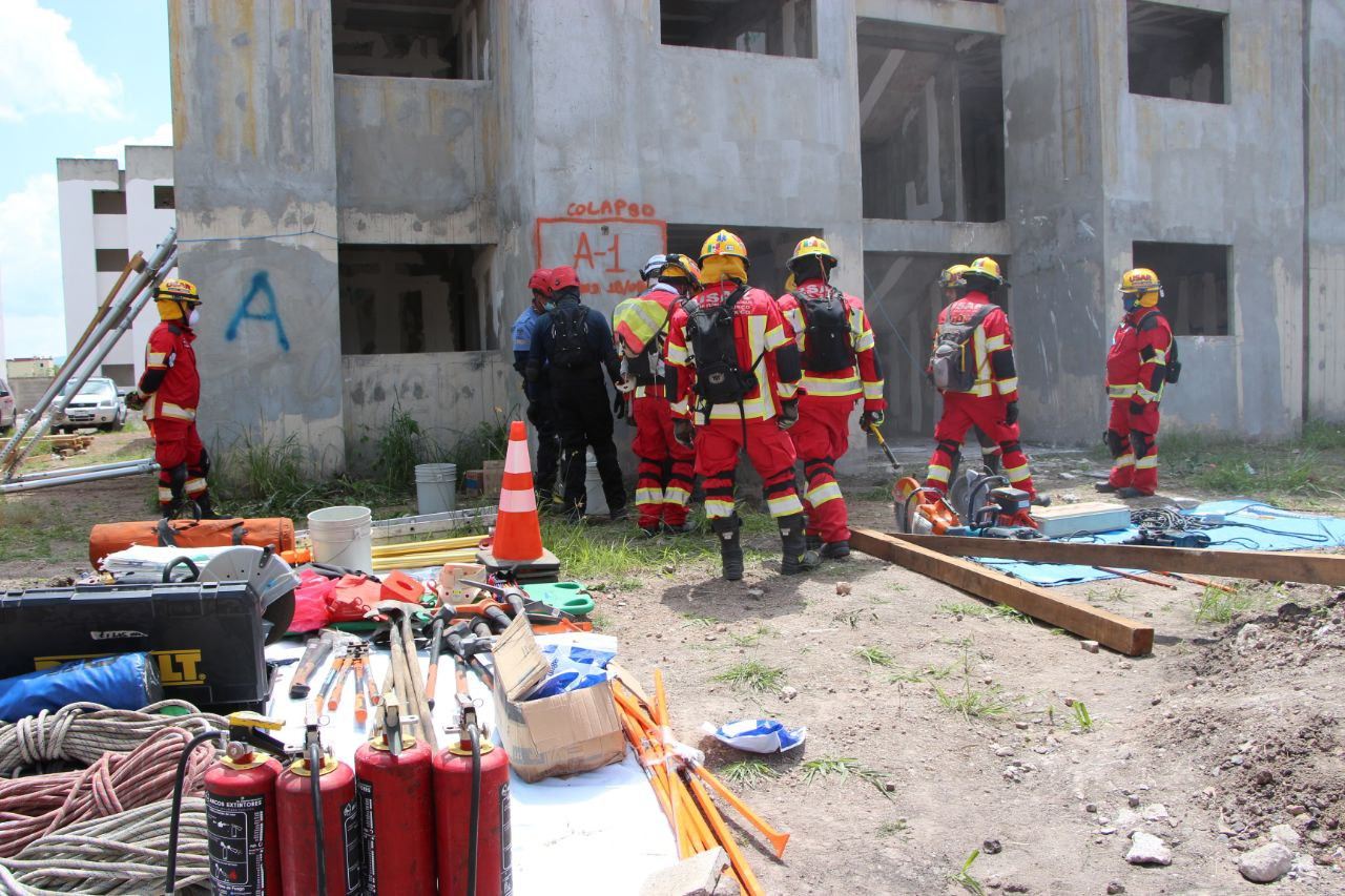 Las prácticas se desarrollaron durante 24 horas continuas e incluyeron el uso de herramientas especializadas, apuntalamientos, búsqueda electrónica, rescate vertical, levantamiento de cargas, atención prehospitalaria y traslado de víctimas al Área de Concentración de Víctimas.