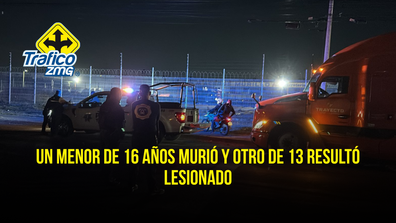 Un adolescente de 16 años murió y otro de 13 años de edad resultó lesionado tras un accidente ocurrido sobre la Carretera al Salto, en el cruce con la calle 24 de Febrero, en la colonia Alamedas. Los menores circulaban en una motocicleta sin placas y sin equipo de protección.