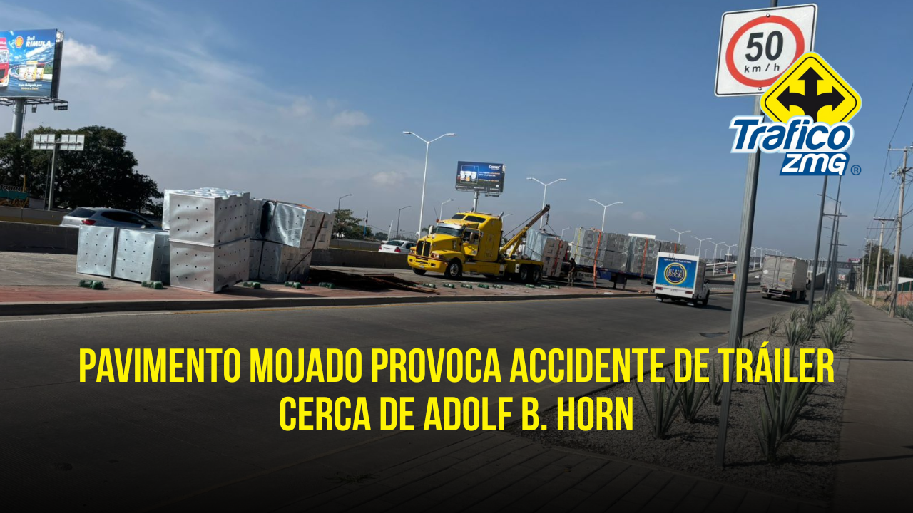 La noche de este sábado, un tráiler que transportaba cajas de aluminio volcó sobre Periférico Sur, a pocos metros del cruce con avenida Adolf B. Horn, generando afectaciones viales en la zona.