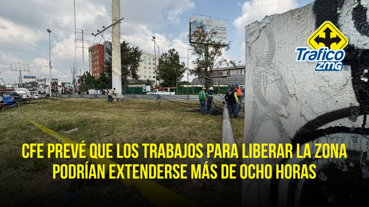 La caída de tres postes de la Comisión Federal de Electricidad (CFE) sobre la avenida Vallarta, a la altura de las oficinas de la Comisión Nacional Forestal (CONAFOR), provocó el cierre total del ingreso de Periférico hacia Vallarta, en dirección a avenida Aviación.