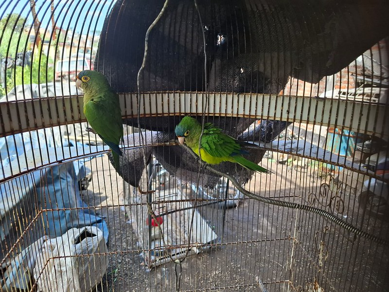 Durante la revisión también se encontraron tres aves silvestres, entre ellas dos pericos atoleros (Eupsittula canicularis) y una guacamaya (Ara militaris), esta última catalogada como especie en peligro de extinción.