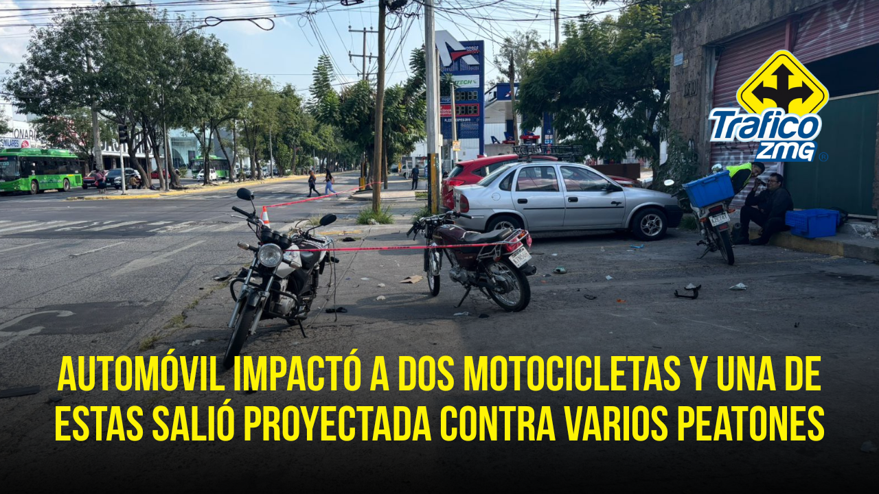 Esta tarde, un accidente en Guadalajara dejó múltiples lesionados: Se trató de un choque entre un automóvil y dos motocicletas en el cruce de la calzada Jesús González Gallo y la calle Salvador López Chávez, en la colonia La Aurora.