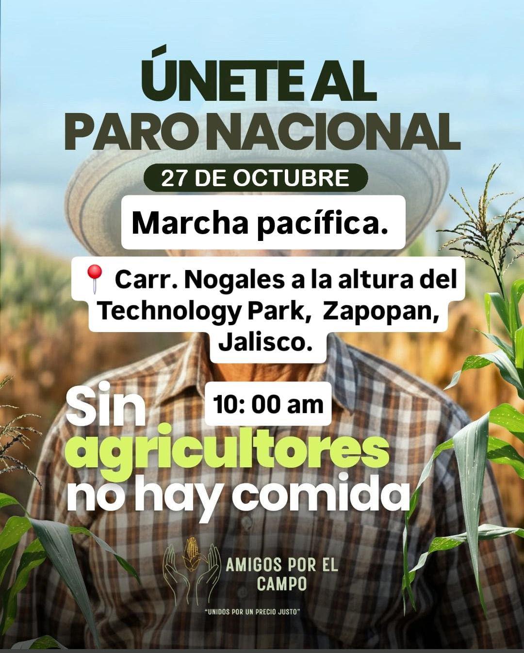 La convocatoria, emitida por la Unión Nacional de Trabajadores Agrícolas (UNTA), circula con la consigna “Sin agricultores no hay comida”, y apunta a activar protestas en varios estados, entre ellos Jalisco, Michoacán y Guanajuato.