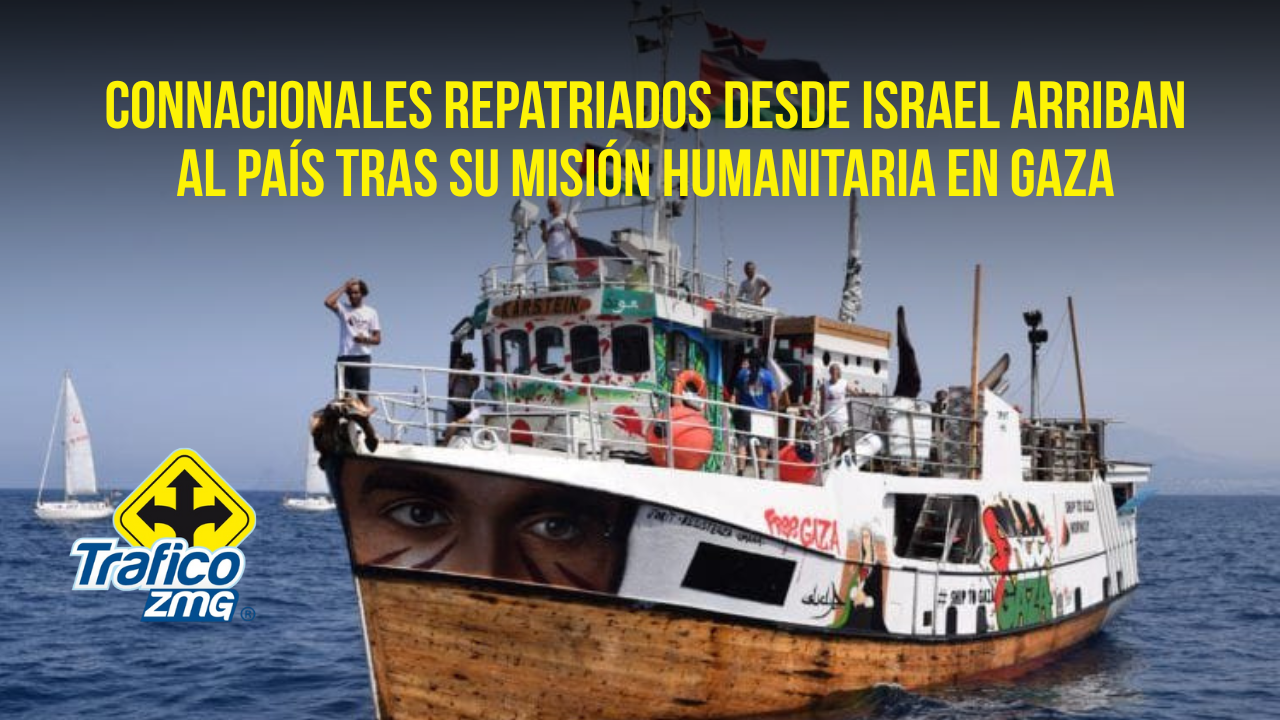 Este miércoles 8 de octubre aterrizaron en México seis mexicanos que habían sido detenidos en Israel durante su participación en la Flotilla Global Sumud, una iniciativa humanitaria hacia la Franja de Gaza. Los repatriados son Sol González Eguía, Ernesto Ledesma Arronte, Arlín Medrano Guzmán, Carlos Pérez Osorio, Diego Vázquez Galindo y Laura Alejandra Vélez Ruiz Gaitán.