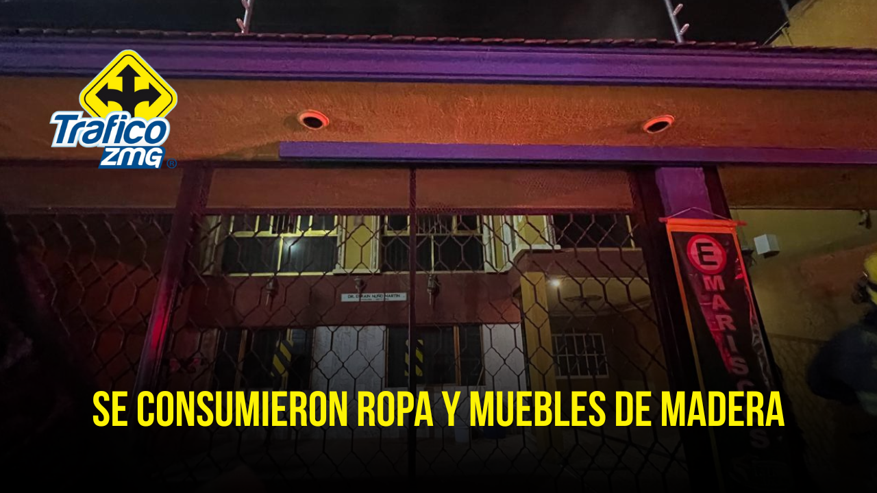 Un incendio afectó una finca de dos niveles ubicada en la calzada Revolución, en el cruce con la calle Relojeros, en la colonia Jardines de la Paz, Tlaquepaque.