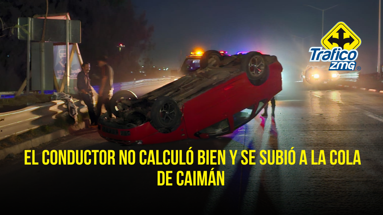 El tripulante del vehículo siniestrado calculó mal para tomar la incorporación, lo que provocó que el coche impactara y se subiera al borde de concreto que divide los carriles conocido como cola de caimán. Tras el impacto con el borde, el vehículo cayó volcado sobre su costado, obstruyendo el carril de la extrema derecha del Periférico en dirección a Chapala.