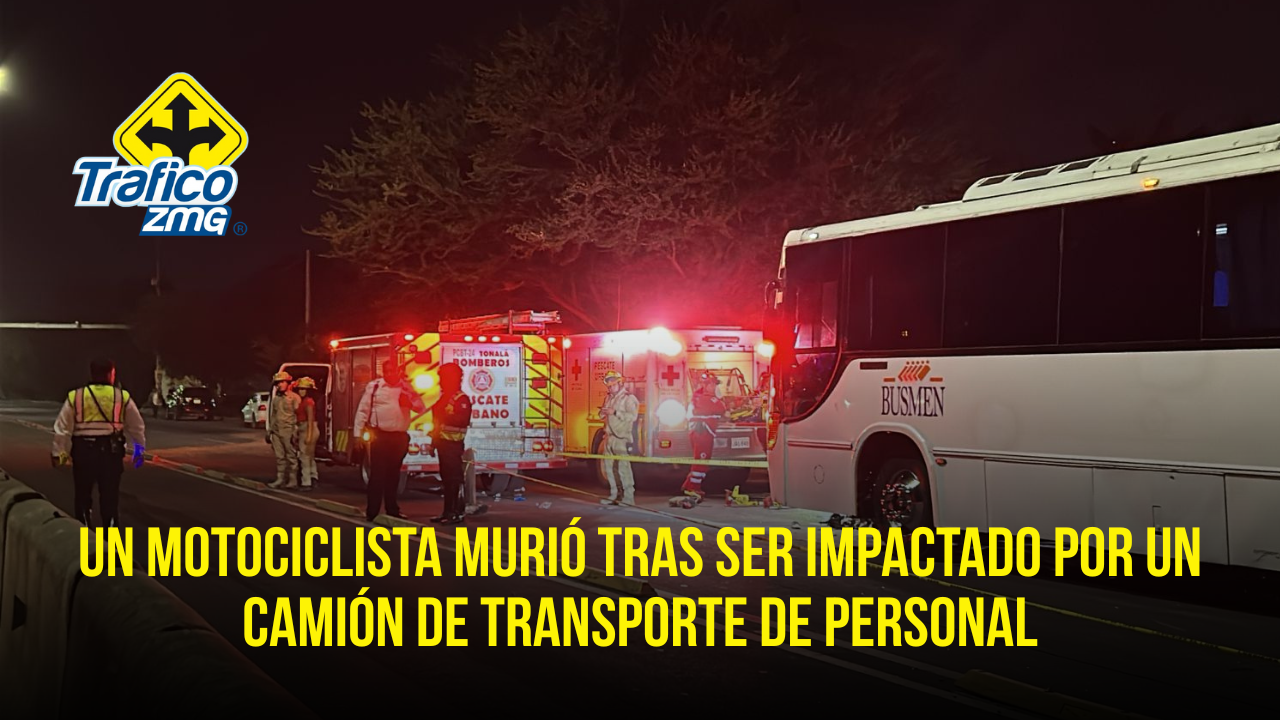 La noche de este domingo, un motociclista falleció y su acompañante resultó gravemente herida luego de ser impactados por un camión de transporte de personal. El accidente tuvo lugar sobre avenida Tonaltecas, al cruce con Álvaro Obregón, en la colonia San Gaspar, en el municipio de Tonalá.