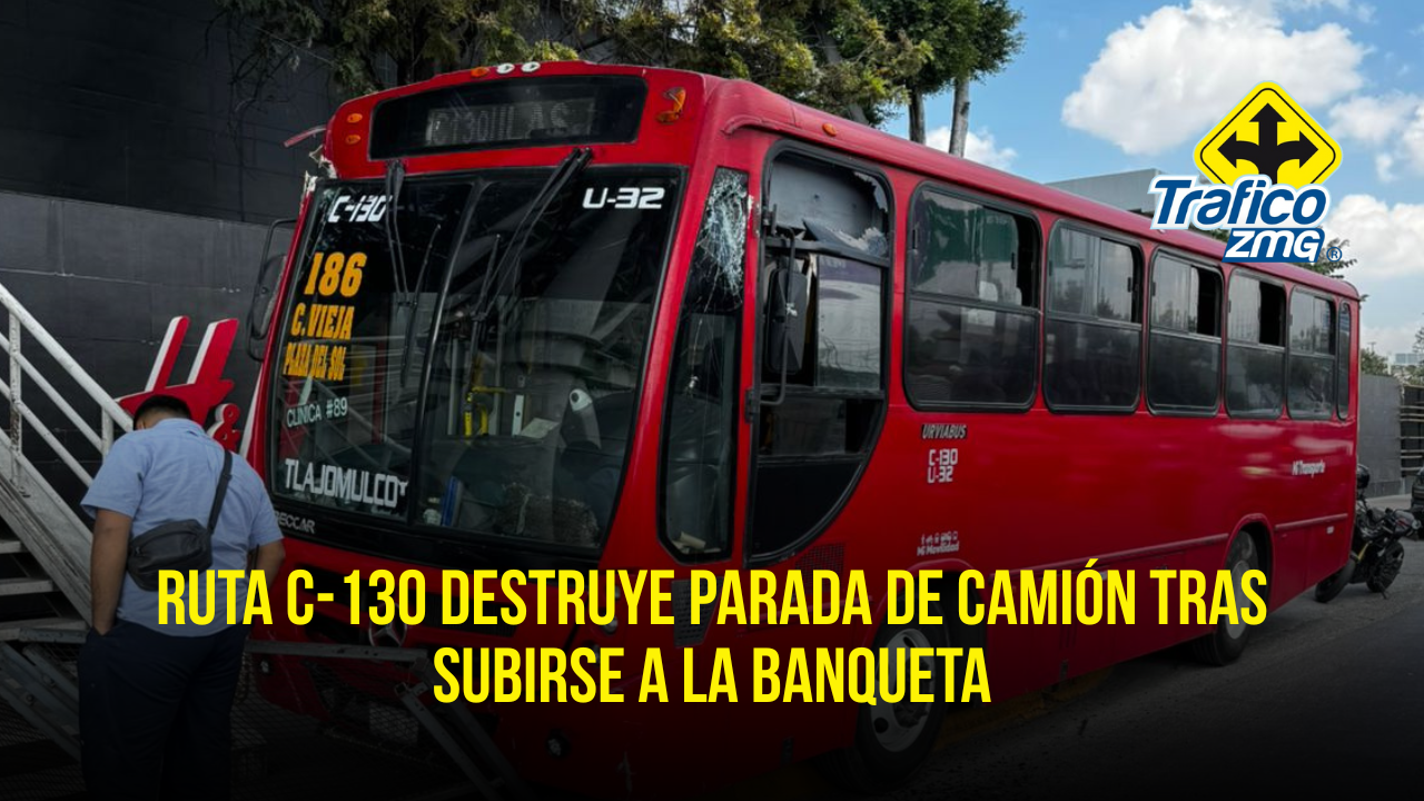 Un camión de la ruta C-130 terminó sobre la parada de autobús ubicada en López Mateos, a la altura del puente de Galerías Santa Anita, en la colonia San Agustín de Tlajomulco.