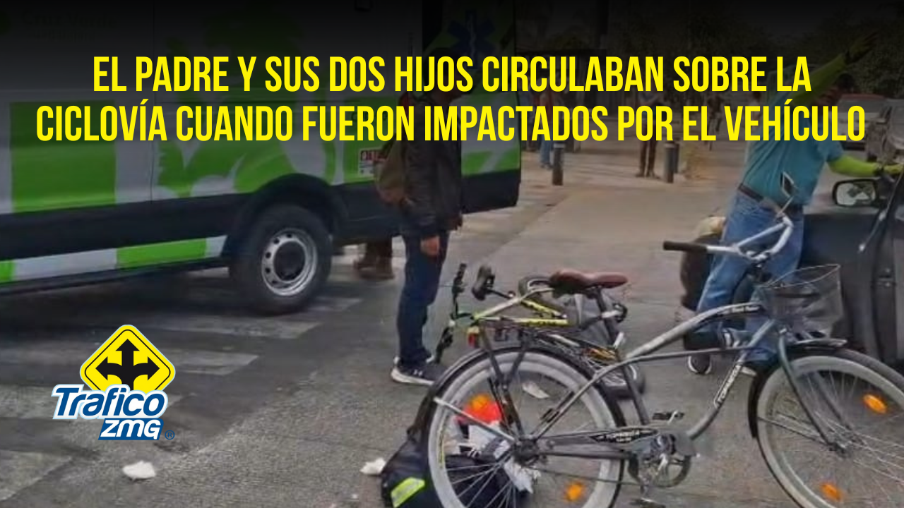 Una familia de tres ciclistas —padre, hijo e hija— fue impactada por un automóvil cuando circulaban por la ciclovía en el cruce de Salvador López Chávez y Boulevard Marcelino García Barragán, cerca de la Preparatoria 12 de la Universidad de Guadalajara, en la colonia Olímpica de Guadalajara.