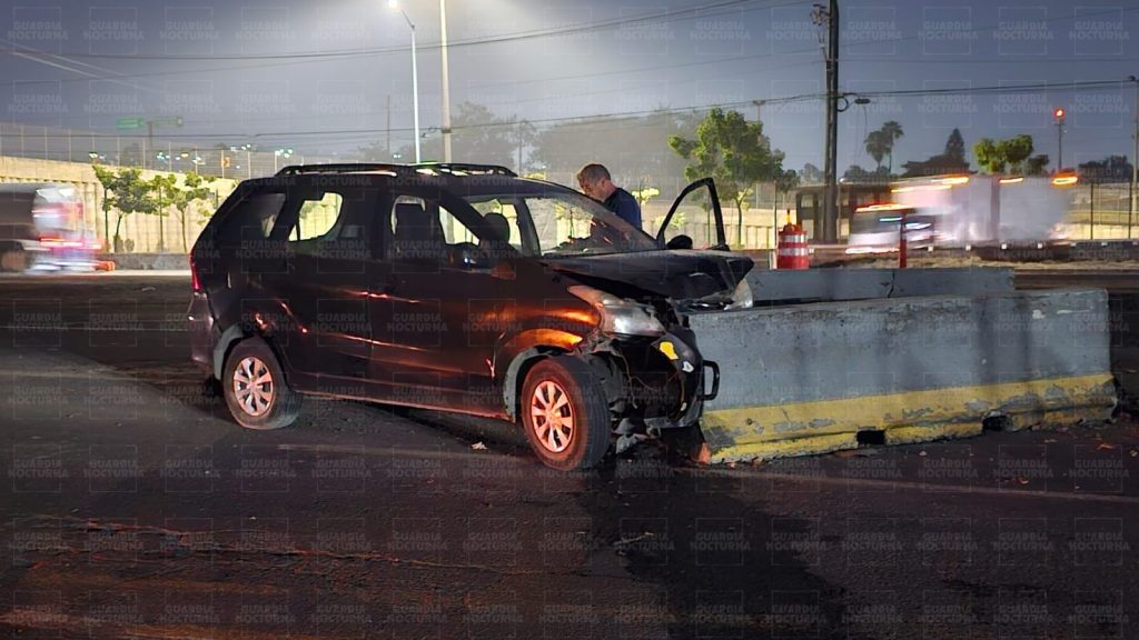 Un hombre de aproximadamente 60 años de edad resultó lesionado después de que la camioneta Toyota Avanza que conducía se impactara contra un bloque de concreto, en Tlaquepaque.