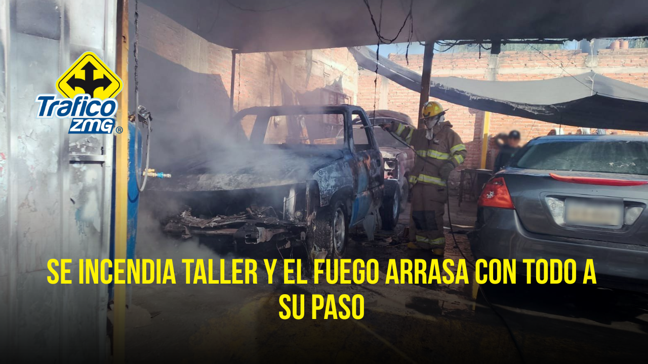 🔥 Un incendio consumió una camioneta y varios equipos dentro de un taller de laminado y pintura ubicado en Abasolo Poniente y Ocampo Norte, en la cabecera municipal de Tlajomulco de Zúñiga.
