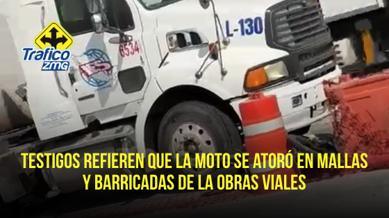 Ciudadanos que circulaban rumbo al aeropuerto informaron que la motocicleta habría quedado atorada entre mallas y barreras de construcción instaladas en la zona, lo que presuntamente impidió la maniobra del conductor y provocó que terminara debajo del tráiler en movimiento.